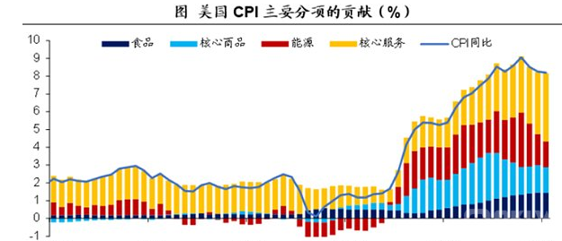 美国CPI的构成分为能源、食品、核心商品和服务几大项:能源方面,布油已从年初的120美元降至89美元;食品及商品方面,主要粮食产品的大宗价格正在走低、阻塞的供应链逐渐恢复,进口指数和家庭支出增速预期也都大幅**。剖析目前美国通胀持续高烧不退的原因,房租和服务项是美国核心通胀上行的主要驱动力。