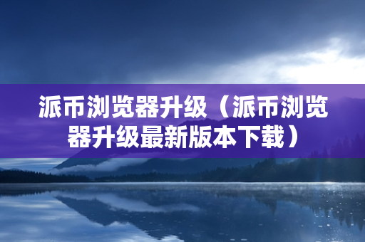 派币浏览器升级(派币浏览器升级最新版本下载)