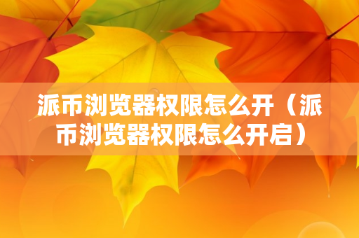 派币浏览器权限怎么开(派币浏览器权限怎么开启)
