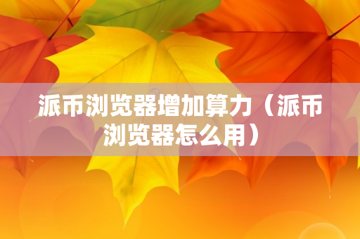 派币浏览器增加算力(派币浏览器怎么用)