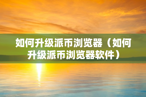 如何升级派币浏览器(如何升级派币浏览器软件)