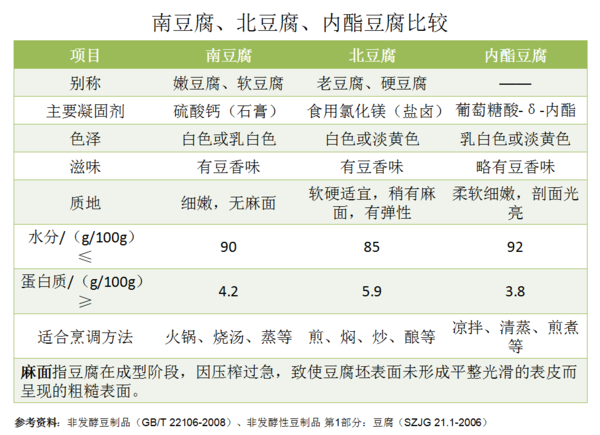 内酯豆腐,用葡萄糖酸-δ-内酯为凝固剂生产的豆腐。改变了传统的用卤水点豆腐的制作方法,可减少蛋白质流失,并使豆腐的保水率提高,比常规方法多出豆腐近1倍;且豆腐质地细嫩、有光泽,适口性好,清洁卫生。