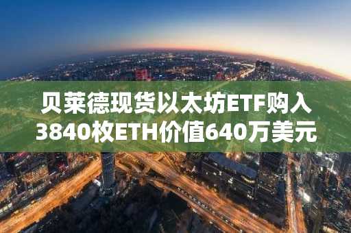 贝莱德现货以太坊ETF购入3840枚ETH价值640万美元