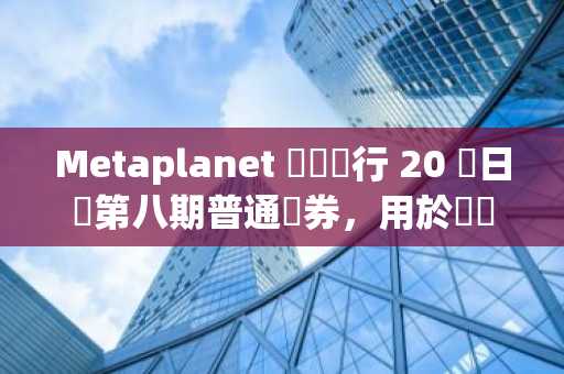 Metaplanet 計劃發行 20 億日圓第八期普通債券,用於購買更多比特幣