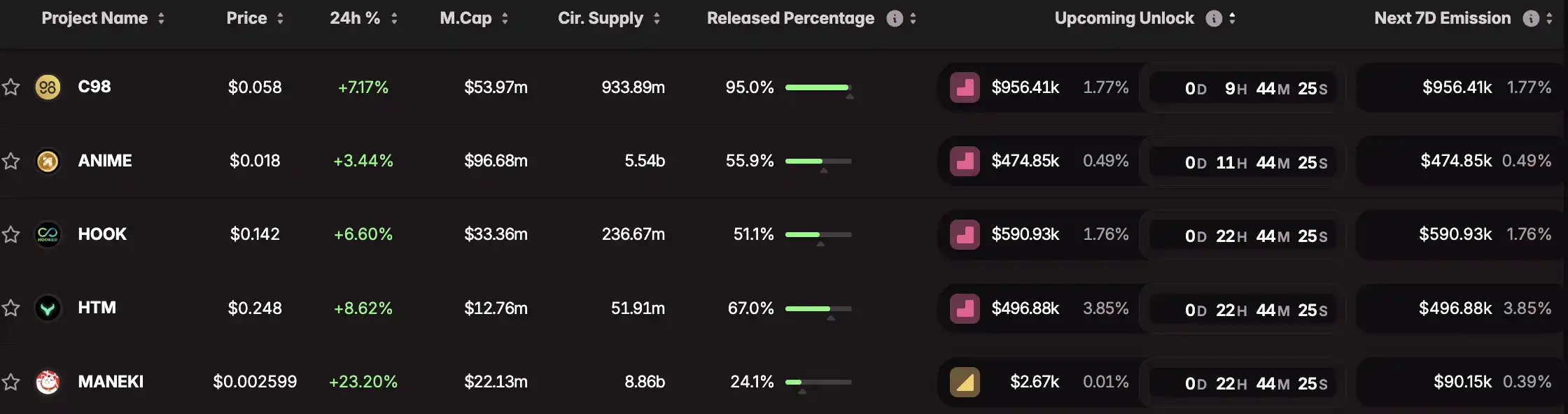 每日市场整体资金热度(根据资金费率反映)与**解锁