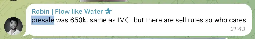 ALT 认为几乎没有一种方式能让所有类型的投资者都满意,而为了项目发展他已经选择了对一个正规项目最适合的路径。我们可以在社区中得知对这些社区的预售市值价格是跟**发射时的 IMC「初始市值」相同且有**的贩售限制,团队宣称对每个出售的**地址都进行了监控,以便随时应对。