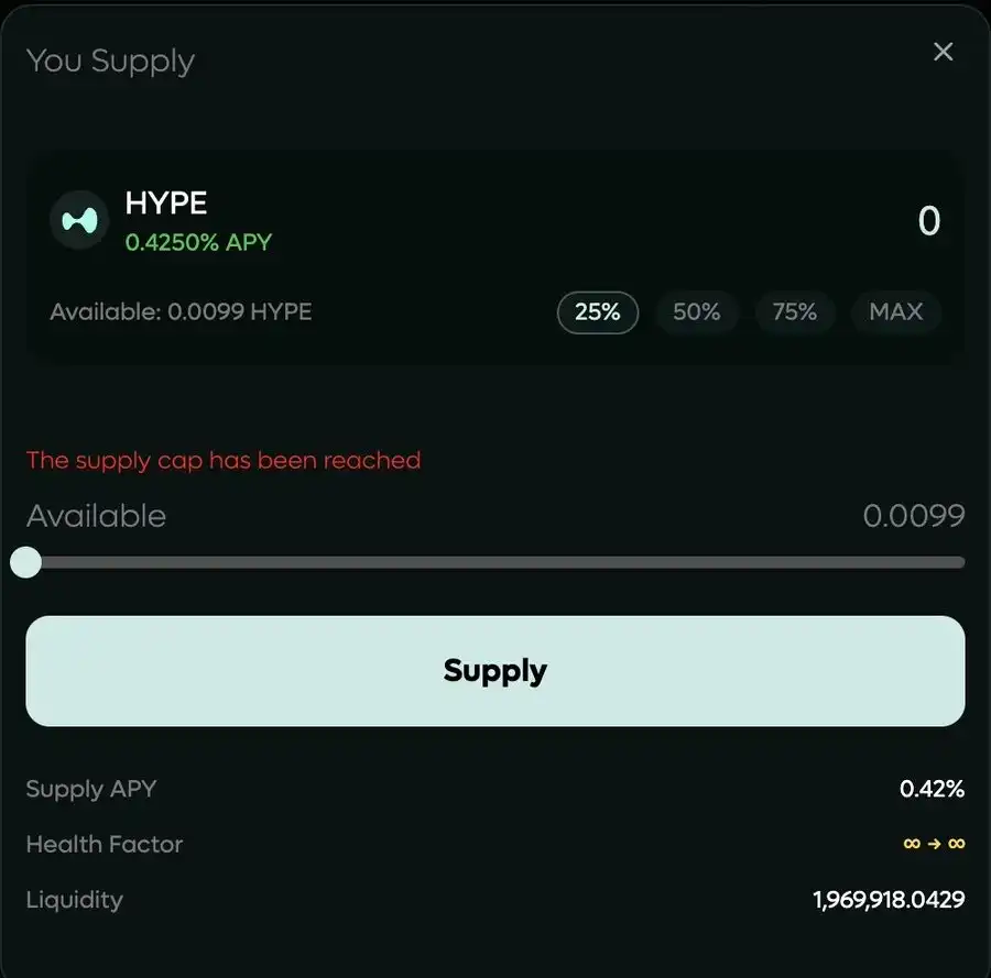 另外,我目前只能在部分地址上存入一点小额资金,但整体思路是:持续关注什么时候重新开放更多存款空间,然后用多个地址去存入/借出 $HYPE。
