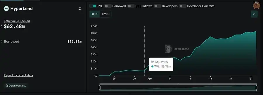它的目标是成为这条链上的原生借贷协议。自上个月以来,HyperLend 的 TVL 呈指数级增长,可见盯上这里的人**不止我们。