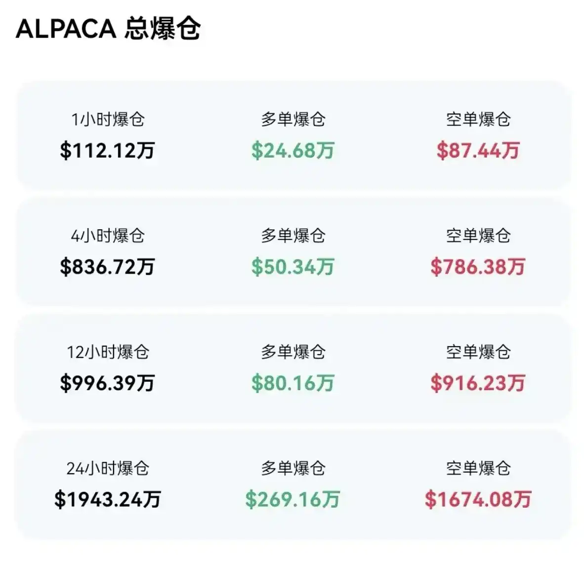 于是,在 4 月 26 日 ALPACA 爆仓量甚至超越比特币,且以空单爆仓为主。整场行情,似乎变成了针对空头的「精准收割战」。