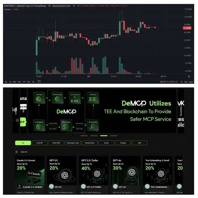 这是一个实时运行的 Web3 MCP 市场,提供 GPT-4 和 Claude 等大型语言模型的折扣接入服务。平台采用可信执行环境(TEE)与链上安全机制,并已与 Phala Network 达成技术合作。