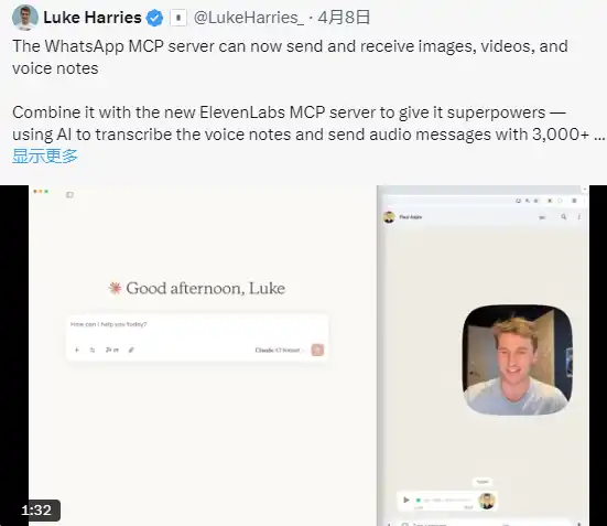 Eleven Labs 还开发了语音转文字功能,支持通过 WhatsApp 进行语音转录。