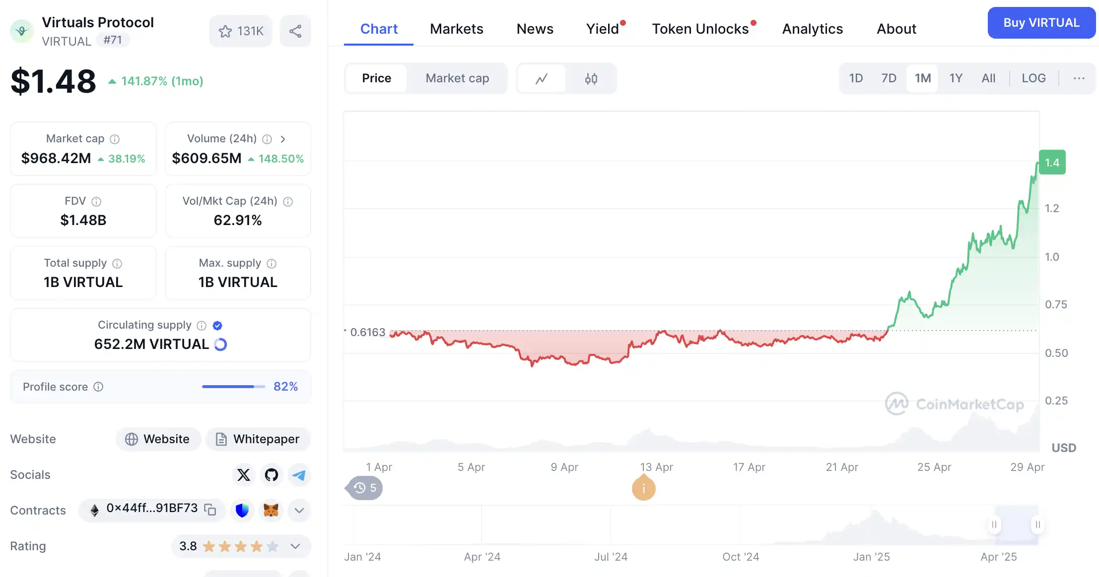 Virtuals 在熊市持续 Build,准备了多个更新,在这个 AI 市场回暖的一瞬间,将准备的所有东西高**的丢给了市场。仅仅一周,币价便上涨了 3 倍有余,市场反响热烈。