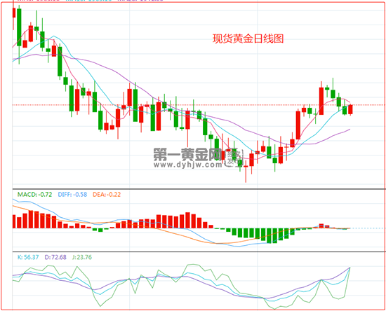 从日线图上看,金价震荡上涨;MACD金叉,KDJ死叉,均线交织,短线走势变数较大,鉴于之前金价在强阻力位附近录得了类似“黄昏之星”的顶部信号,此后连续两个交易日下跌,在**5日均线1965前,后市金价仍下行风险,初步支撑在55日均线1953.07附近,上周低点支撑在1945.67附近,21日均线支撑目前在1940关口附近,若失守该支撑,则增加后市看空信号。