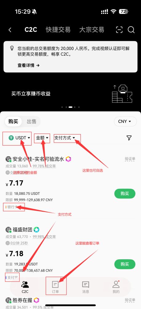 在交易前,你需要将资金转入binance币安账户。由于法规限制,通常需要先使用人民币购买USDT(一种稳定币)来进行加密货币交易。在binance币安的C2C交易区,你可以选择银行卡、微信或支付宝等支付方式购买USDT。购买完成后,USDT将充值到你的账户余额中。