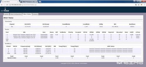 5、进入Miner Statu(矿机状态),多刷新几次,就可以出现蚂蚁矿机目前的运行情况啦!再打开自己的矿池,就可以看到矿机为你挖出了多少币。