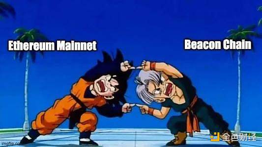 让我们打个比方。想象以太坊是一艘还没有准备好进行星际航行的飞船。有了信标链,社区就相当于建造了一个新的引擎和一个坚固的船体。经过重要的测试后,为飞行中的把旧引擎换成新引擎。这将把新的、更**的引擎与现有的飞船融合在一起,准备投入一些光年的时间,并占领整个宇宙。- Ethereum.org 对合并的类比,新引擎是信标链 ( 权益证明 ),旧引擎是工作证明,宇宙飞船是以太坊。