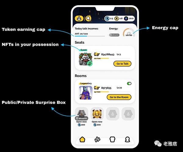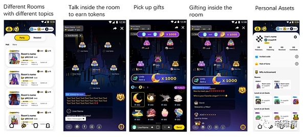 这样就形成了多种角色,嘉宾,主持人持有座椅NFT上麦交流赚AHT,同时必须相互送礼维持房间血条。有房主提供房间NFT,靠收送礼佣金赚AHT。