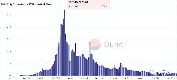 StepN 在 bsc 上的日活跃地址数,从6月的2.7万降到1千,降幅超过90%。