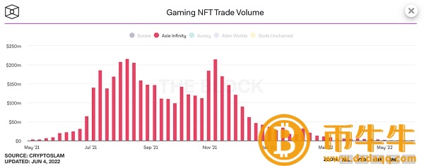 Axie Infinity此前曾掀起GameFi热潮,其巨大的造富效应使其总交易量在短时间内飙升,称霸NFT项目数月。作为‘X赚’的鼻祖,Axie Infinity依靠持续增长来维持运营,这意味着Axie Infinity将面临长期可持续性的问题。