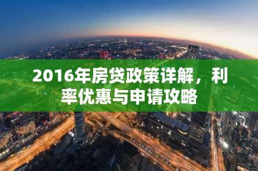 2016年房贷政策详解,利率优惠与申请攻略