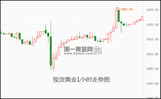 本交易日现货黄金开于1920.18美元/盎司,**上探至1922.78美元/盎司,**触及1920.15美元/盎司,截至发稿暂报1922.78美元/盎司,涨幅0.14%。