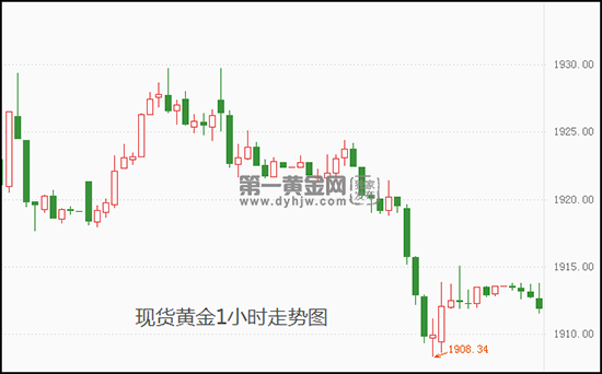 现货黄金周二下跌,本交易日亚盘仍然维持弱势,在1910美元附近交投。从1小时走势图来看,红色动能柱出现,但力量还**微弱,短线来看,重磅数据公布之前,多空都将保持谨慎。