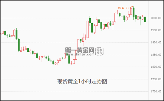 本周五现货黄金开于2004.67美元/盎司,**上探至2005.47美元/盎司,**触及1972.75美元/盎司,**收报1983.20美元/盎司,跌幅1.07%。