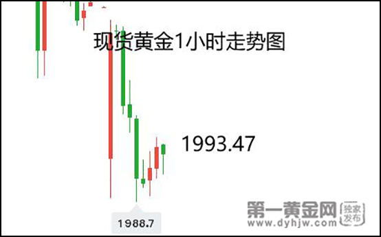 本周周一早间黄金开盘跳空至1990关口,随后又冲高回落,暂时维持在1990上方,截至午后发稿,黄金报价在1993.47美元/盎司。