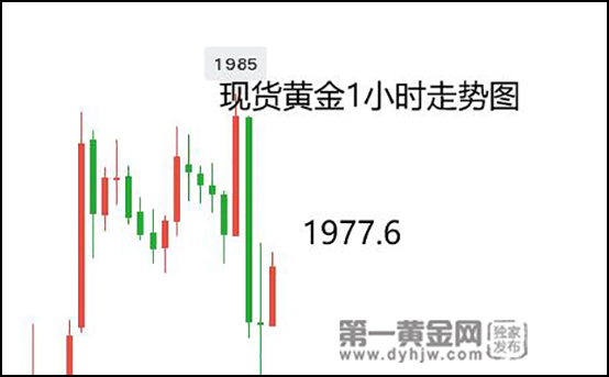 日内黄金冲高1985美元后回落,一度逼近1970一线,截至周五下午发稿,黄金报价在1977.6美元/盎司。