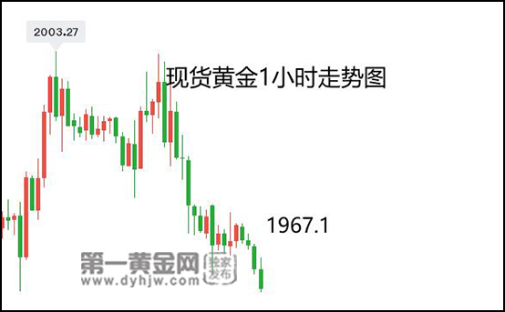 上周黄金冲高2000关口后回落,周一午后,进一步跌破1970关口,截至午后发稿,报价在1967.1美元/盎司。