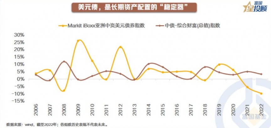 根据wind统计,中资美元债和中债的年度收益会呈现出**的逆向波动特征,对长期资产配置能起到“稳定器”效果。