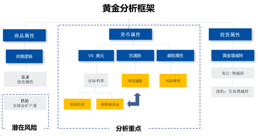 而这两点在黄金分析框架里,都归属于“货币属性”这个分析因素。