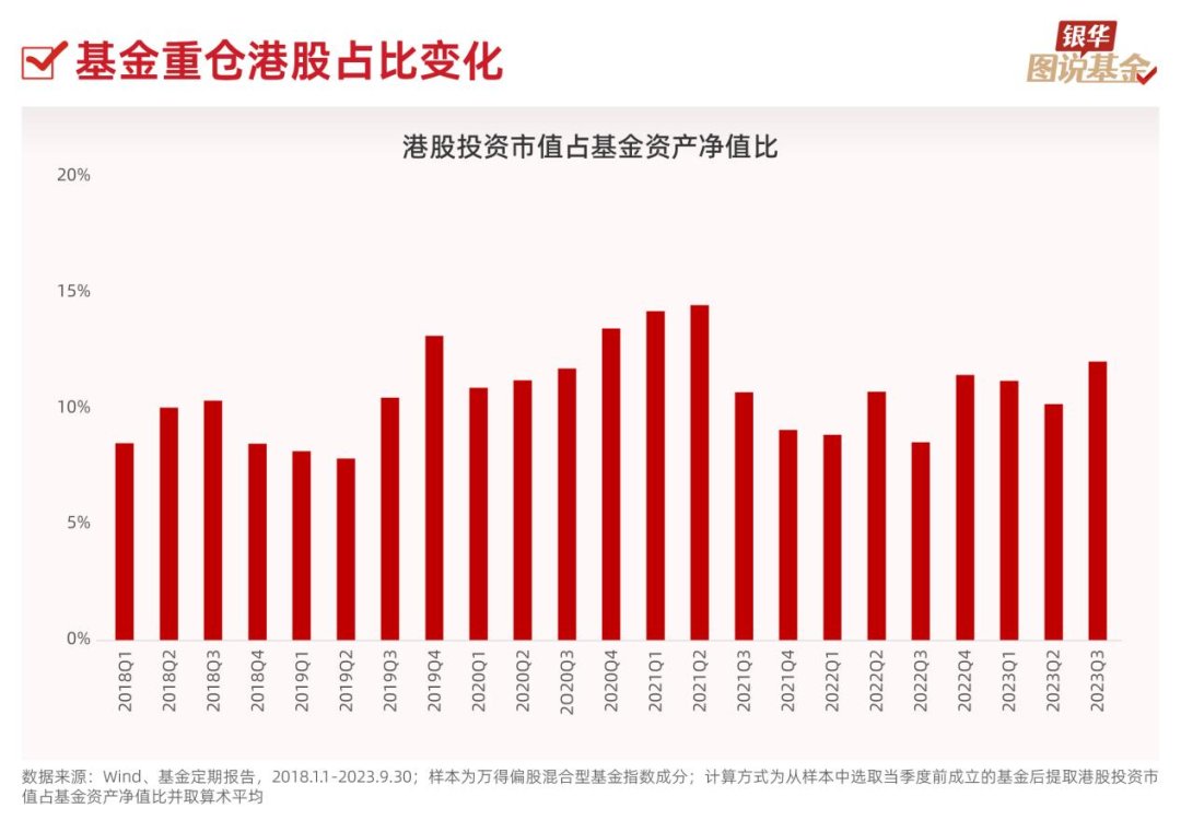 3、三季度开始,公募基金就已敏锐捕捉到市场“风向”的变化,开启了逆势加仓港股的节奏。以偏股混合型基金为例,三季度港股持仓市值占比较上一季度增长1.84%,同比增长幅度达40.82%,不失为一种积极“信号”。