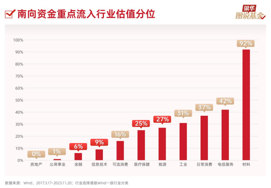 9、整体来看,南向资金主要流向了金融、信息技术、可选消费等领域,其中,资金流向低价股的领域主要为银行、光伏、医药、地产、零售及汽车等板块。