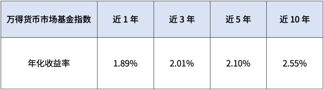 虽然随着低利率时代的带来,万得货币市场基金指数近10年、近5年、近3年、近1年的年化收益率也在不断走低,但是**回撤近10年始终都是0。(数据来自wind,截至2023/12/8)