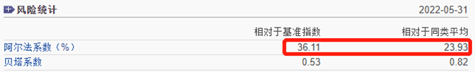 阿尔法系数在基金评价机构——晨星**官网,输入基金代码就可以查询。比如说下图这只基金,相对于业绩基准的阿尔法系数就是36.11%,也就是基金经理相对于基准实现的“超额收益”。