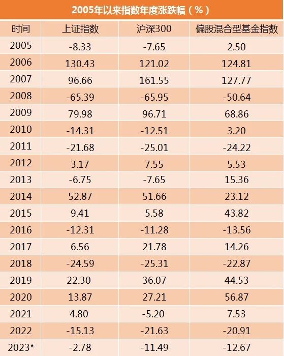 从历史表现来看,2005年至今,沪深300指数没有出现过连续3年的下跌,偏股混合型基金指数也没有出现过连续两年下跌,如果今年的**十几天里没能够让指数在年内的表现由跌转涨,那这个维持了17年的纪录将会在今年被打破。