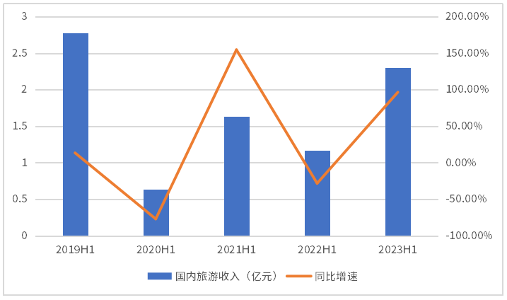 图:2019-2023H1**旅游收入及同比增速