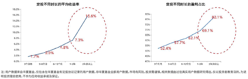 《投资者定投洞察报告》数据显示,当坚持了2年及以上的定投交易时,平均收益率可达15.6%,盈利占比也可以超过80%,投资者的盈利体验得到了有效提升,更有望实现投资目标,享受到时间的复利。