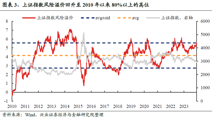 上证指数的风险溢价已经回升至2010 年以来83.4%的历史高位;