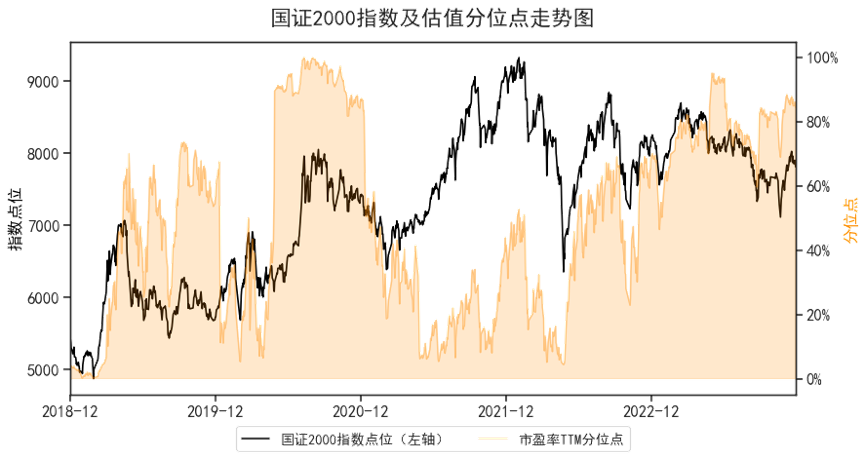 我们布局一只基金不仅要考虑它的前景,还需要考虑它的价格。而从估值的角度来看,小盘风格代表国证2000目前近5年的市盈率分位数相对较高,截止11月底分位点已经达到了5年内84%的高位,现在想要布局的话,需要考虑风险。