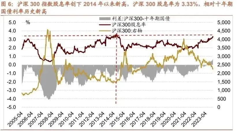 在当前利率**持续下移的背景下,沪深300指数3.3%的股息率,已经具备了中期配置价值。
