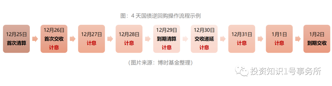 由于国债逆回购的计息规则比较特殊,背后涉及到四个计息的关键时点:**清算日(购买日)、**交收日(计息起始日)、到期清算日(资金可用日)、到期交收日(资金可取日)。