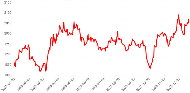 COMEX黄金期货价格,20230103-20231222