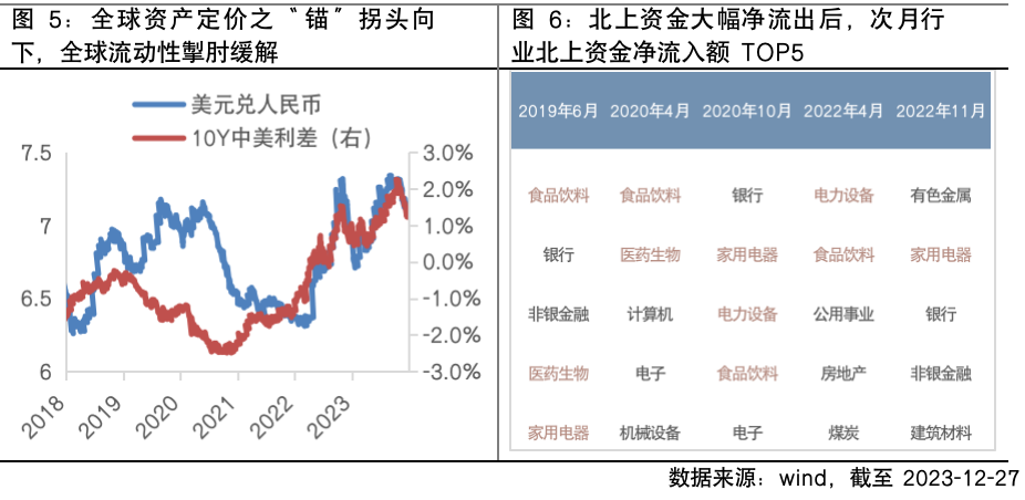 另一方面,随着美债约束打开,消费的估值压制或有缓解,同时大消费板块作为北上资金偏好的核心资产,有望受益于北上资金的回流。