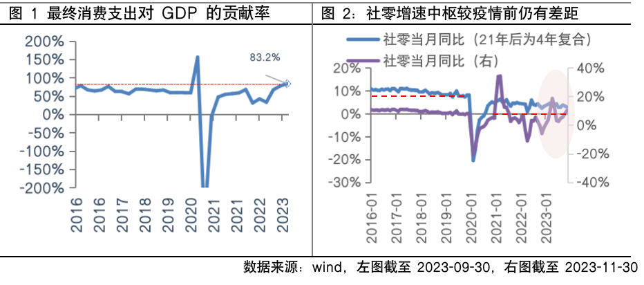 不过,剔除基数效应来看,11月社零的四年复合增速均值仅3%,与较疫情前9%的增速**仍有**差距,可见恢复和扩大消费的基础还需进一步巩固。12月的**经济工作会议中再度强调明年要着力扩大**需求,提出推动消费从疫后恢复转向持续扩大,政策推动下消费潜力有望进一步释放。