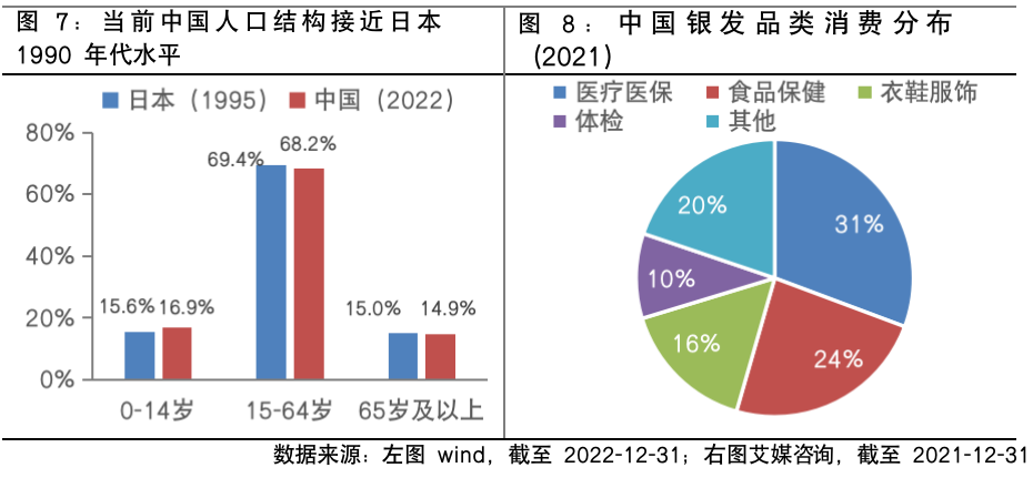 从更长期的视角看,人口结构化转型趋势下,消费也面临着新的机遇和挑战。参考日本经验,人口老龄化趋势下消费支出有收缩压力,但分化持续进行,银发经济、大众消费与新消费或是受益于人口老龄化的三个主要方向。值得注意的是,与日本相比,**消费市场足够庞大,预计内外双循环会加持**消费公司的生命力。