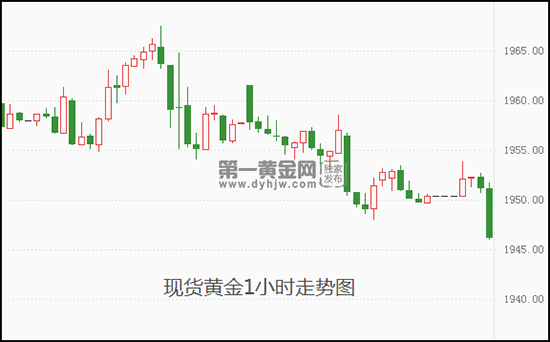 本交易日现货黄金开于1950.39美元/盎司,**上探至1953.87美元/盎司,**触及1945.98美元/盎司,截至发稿暂报1946.54美元/盎司,跌幅0.20%。