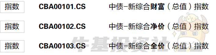 看到这里,可别觉得自己对这个指数相当了解了,因为当我们一输入“中债-新综合”去搜索,就会发现三个选项: