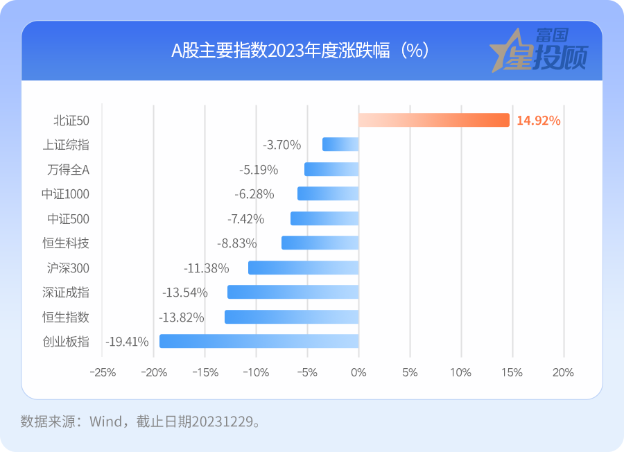 全球股市普涨情况下,A股的表现不尽人意。除北证50指数逆势上涨外,其余指数均呈现不同程度下跌。